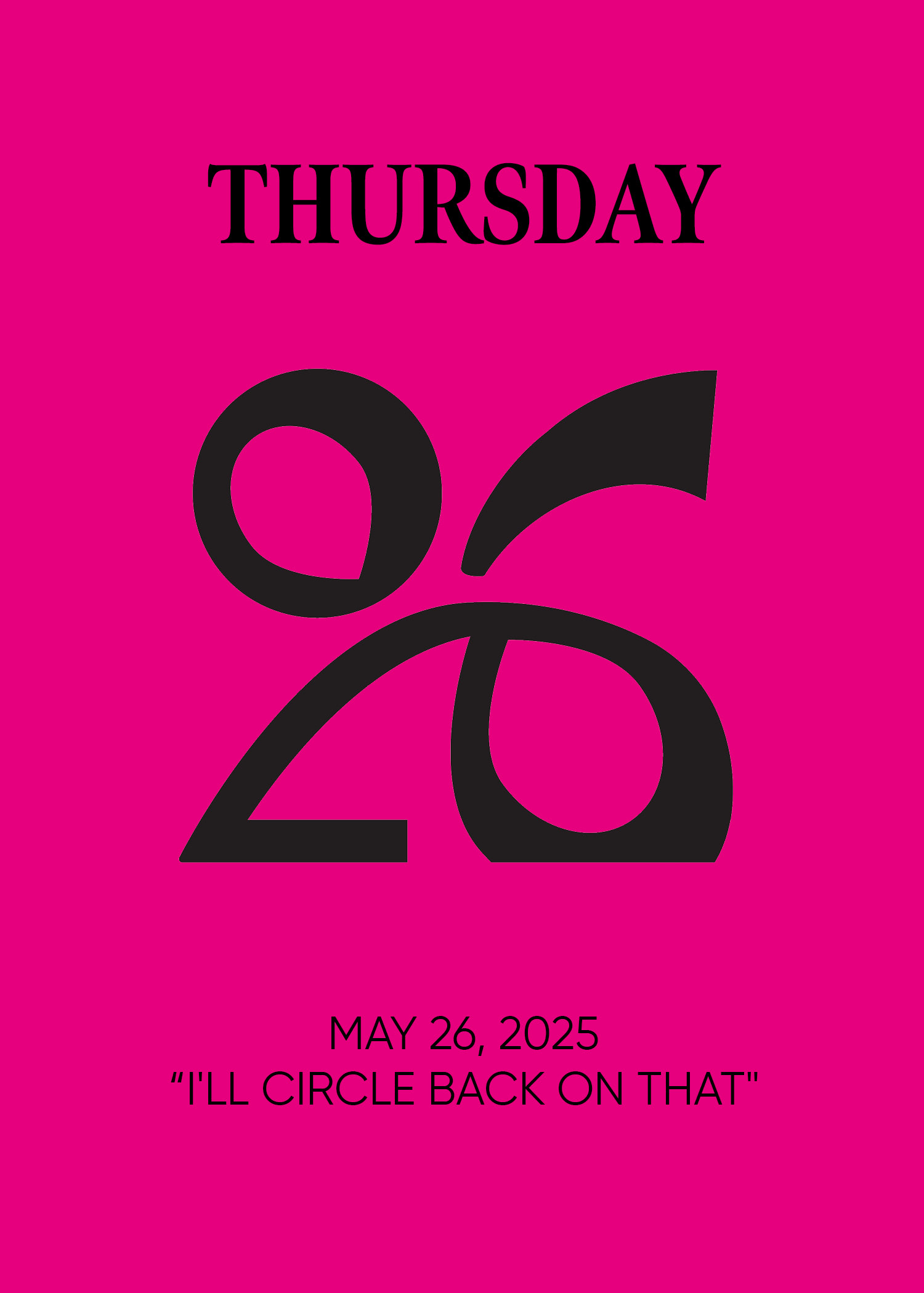 In graphic design, type often plays a supportive role, guiding the reader through the text. But what happens when it takes center stage? In this calendar project, I explored this narrative by creating daily variations of numerical dates. Each number was uniquely designed to reflect something about my day - whether through form, illustration, or style - allowing typography to become the main character.