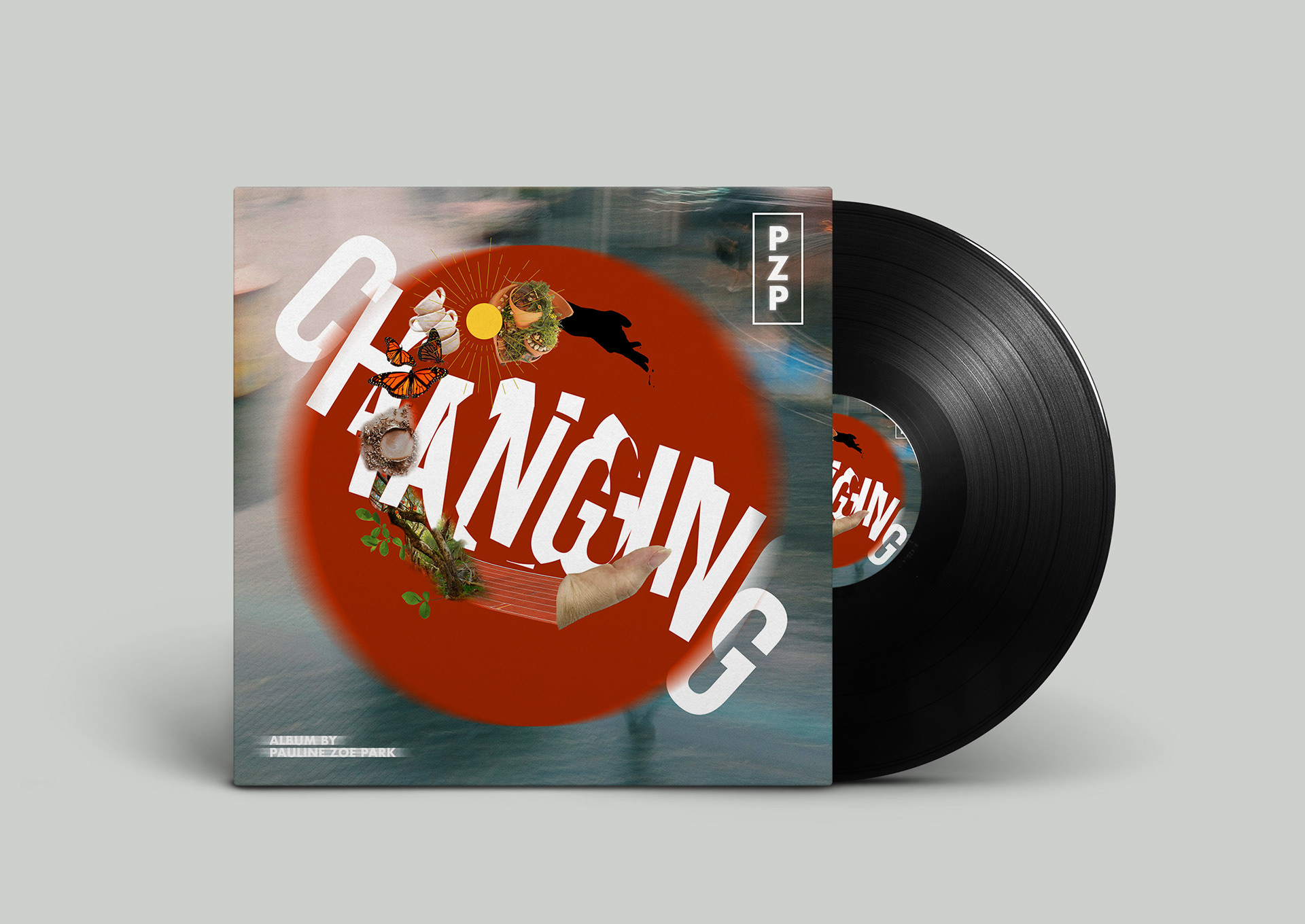 Designing an album cover with the idea of creating typographic texture through the collage of growth motifs and communication of movement in imagery.